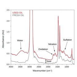 潤滑油はその寿命の間に様々な化学変化が起こるため、汚染物質、劣化生成物、添加剤の減少、および TAN、TBN、粘度などの測定を行い、適正にモニタリングを行う必要があります。