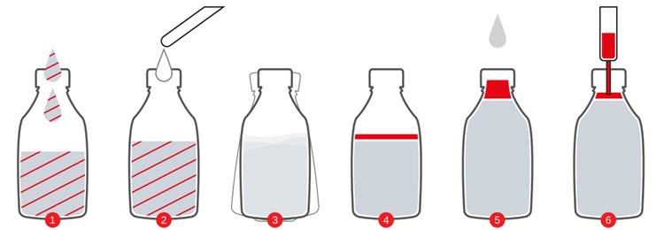 ・その後、容器を静置すると水分と油分の二層に分かれます